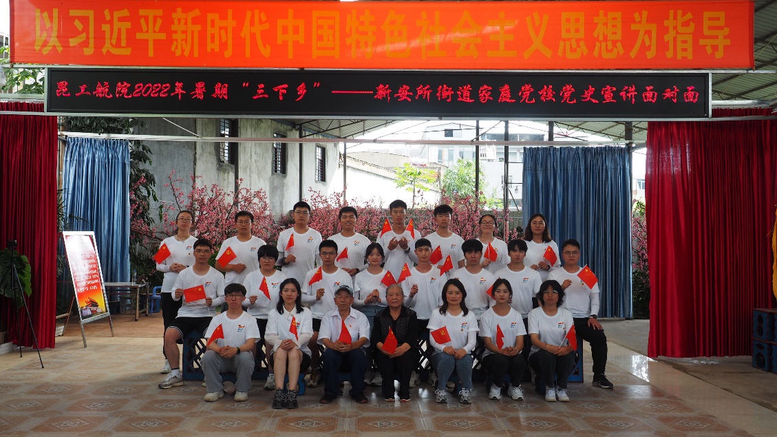 为巩固拓展党史学习教育成果,建立常态化长效化制度机制,把学党史、用党史作为终身必修课,喜迎党的二十大,7月4日下午,91网站 、共青团蒙自市委2022年暑期“三下乡”社会实践团队前往蒙自市新安所镇新时代文明实践教育培训基地、农家书院、家庭党校、老党员张建生家中,开展“老少同声颂党恩,携手喜迎二十大”家庭党校党史宣讲面对面活动。