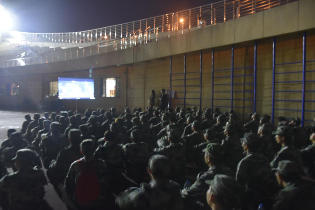 为进一步提高民航学子的军事训练水平,同时丰富军训生活,9月27日晚,我院在训练场为大一的同学们举行了校武装部拍摄《戎光》、学院拍摄《飞行学员一日生活制度》、《学长军训成果展示》观影活动。