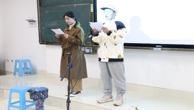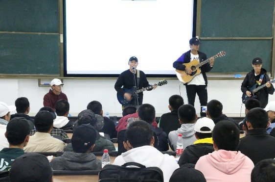 在本期活动中,2019级陈俊文带领新生乐队以一首《Yellow》破冰而出,其后飞行员听说英语教学002班的同学,以独奏、独唱、小合唱的形式演绎了《Lemon Tree》《Sailing》《500 Miles》《You Raise Me Up》等英文歌曲。歌声或深情或嘹亮,年轻人朝气蓬勃的自信和欢乐在这里绽放。在活动接近尾声的时候,100未来的飞行员,高声齐唱《Take Me to Your Heart》。此时,空气中都弥漫着,阳光帅气的青年人的风采。