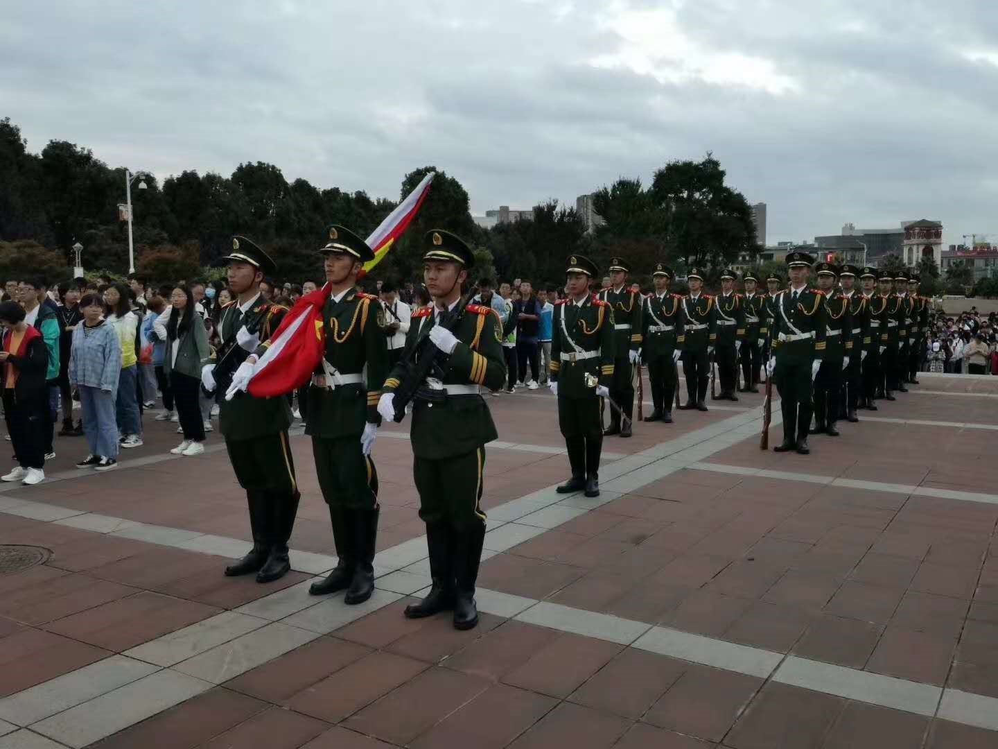 10月1日早上7:30,举行升旗仪式,全体飞行学员参加。伴着晨曦,由飞行学员队组建的国旗班昂首挺胸、精神抖擞,迈着整齐的步伐护送国旗至升旗台,伴随着庄重、嘹亮的国歌,五星红旗冉冉升起。本次升旗仪式激励学员在以后的道路上,以永不懈怠的精神状态和一往无前的奋斗姿态支持和推动民航强国建设。