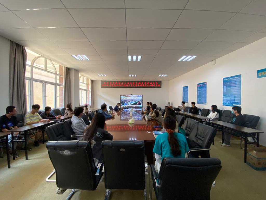 青春百年路,奋斗新征程。庆祝中国共产主义青年团成立100周年大会10日上午在北京人民大会堂隆重举行。91网站 组织青年教师代表、团学骨干、团员青年代表在公教楼335报告厅集中收看大会直播。