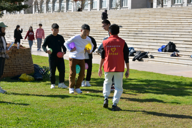本次运动会的参赛队伍由本科生和研究生组成,一共7组,每组8人,比赛包括企鹅漫步、天旋地转、两人三足、齐心协力、手忙脚乱、贪吃蛇六个项目。活动开始,主持人宣读活动要求及注意事项,裁判讲解项目规则并进行演示后,7个参赛队伍展开了激烈的角逐。比赛精彩纷呈,欢呼喝彩声此起彼伏,参赛队员乐在其中,场面十分热闹。与传统运动会相比,趣味运动会将竞技与娱乐相结合,鼓励同学们合作参与,充分发挥团体合作精神。