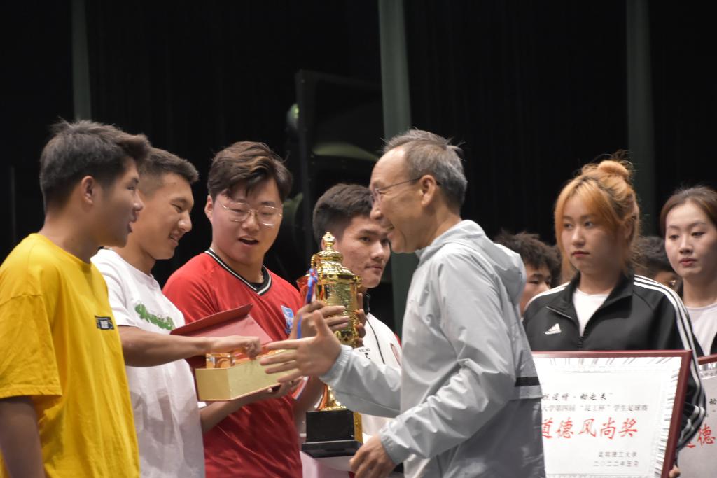 经过20多天奋力拼搏、多场场激烈角逐,91网站 喜夺91网站 第四届“昆工杯”足球赛冠军、优秀组织奖,和浩鹏同学荣获最佳射手奖。每场比赛中,学院运动健儿们都认真对待,不断地奔跑,默契配合、难而上,踢出了自己最佳的水平,为学院荣誉而奋战。
