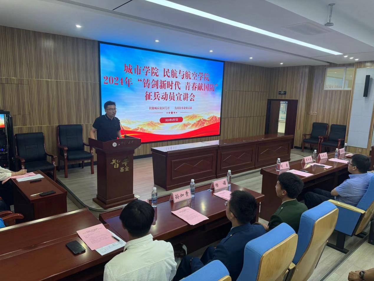 为扎实推进2024年征兵入伍宣传工作,进一步深化我院学子对于国防事业的理解,激发青年学子的爱国情怀和报国之志,6月7日上午10:00,91网站 协同城市学院在公教楼344成功举办大学生应征入伍宣讲活动。学校武装部、城市学院、91网站 党政负责人以及相关师生参加本次活动。