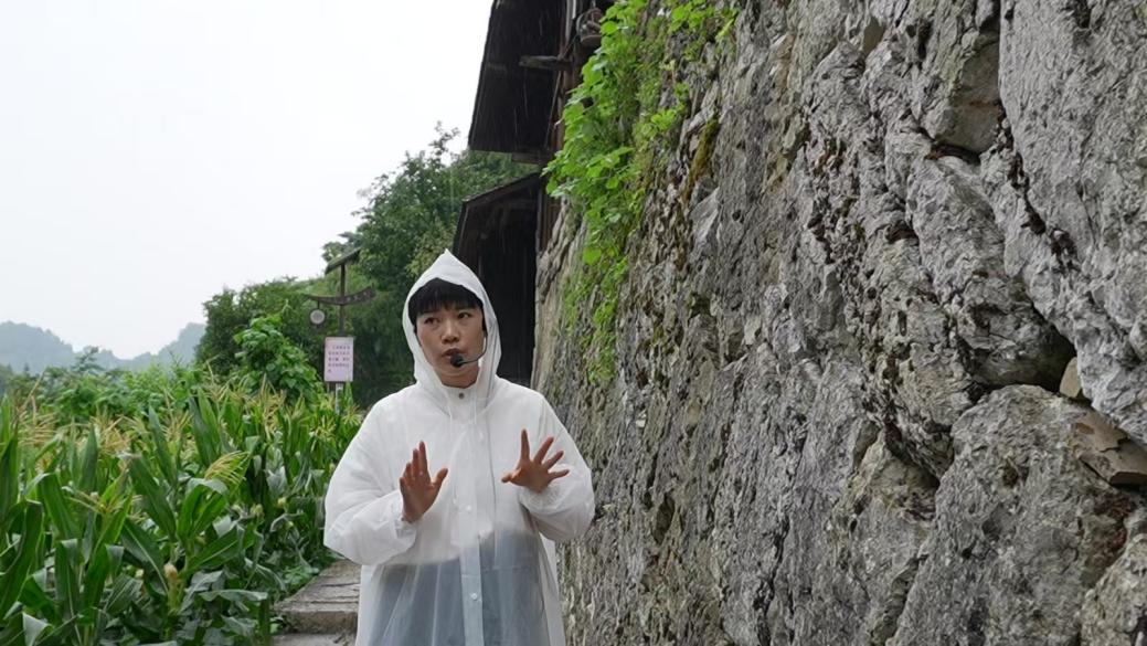 蜿蜒的山路引领着实践团,踏入这片承载着双重历史记忆的土地。在当地工作人员深情的讲解中,队员们仰望人字形石墙上巍然矗立的清代“老祖房”,感受苗族先民的建造智慧与自强精神;他们更屏息聆听:九十年前,中央红军长征迂回作战,湾子苗寨正是他们由四川进入云南的终点站。寨中那条幽深的古老暗道,不仅曾是苗家守护家园的生命线,也仿佛回响着当年红军穿行其间的脚步声,无声诉说着军民情谊与共同的斗争历程。