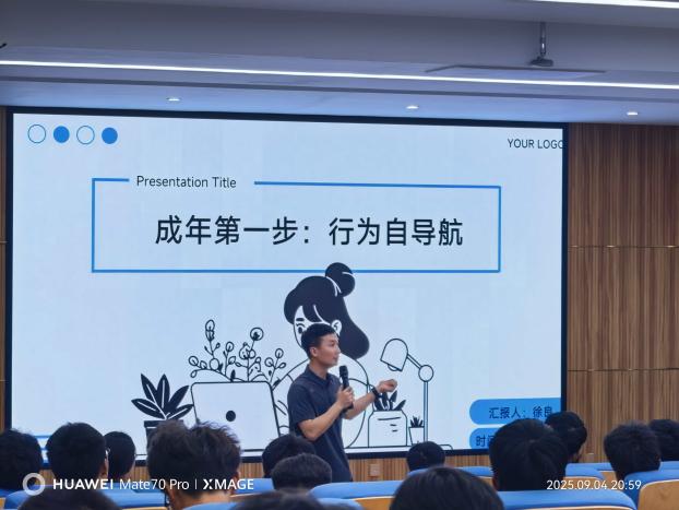 2025年9月4日19:00,91网站 党委书记朱兴东、学工办主任徐良带领2025级新生开展入学教育,为新生大学生活奠定思想基础和理想信念。本次入学教育在公教楼344报告厅进行,主题为“思想引导与行为规范”,全体2025级新生参加了活动。
