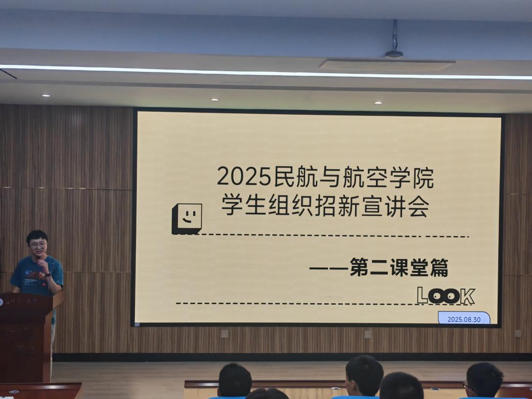 随后,招新宣讲正式拉开帷幕。团委、学生会、青年志愿者协会、飞行器爱好者协会、学生科技协会等社团代表依次上台,各展风采。为了能让新生们更清晰、全面地了解各部门职责,从而挑选出最适合自己的部门参与服务,各社团各部门都精心准备了精美的PPT。团委以图文并茂的形式展示了组织架构与思想引领成果;学生会通过动态图表呈现各部门分工与过往活动成效;青年志愿者协会用温暖的照片和感人的故事讲述公益服务的意义;飞行器爱好者协会借助模型图片与原理动画介绍专业活动;学生科技协会则以科技作品视频与研发流程展示创新魅力。新生们听得全神贯注,不时提问交流,现场气氛热烈非凡。
