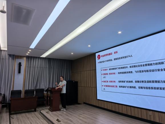 首先,学院夏海廷院长详细介绍了民航与航空领域的专业设置与发展前景,各专业的培养目标、课程体系、师资力量和就业方向。夏院长现场通过视频展示了学院主要的研究领域,分享了行业最新发展动态和技术前沿,激发了新生的专业兴趣。并强调:“大学四年的学习是一个系统工程,需要同学们提前了解专业全貌,明确学习目标。”过程中,同学们就学业规划内容与院长积极互动。
