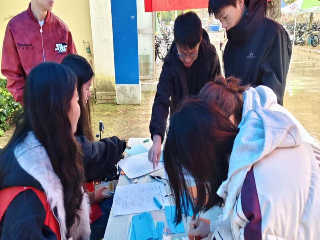 三摊互动添趣味,节气文化入人心。活动现场人气高涨,志愿者们分设了各有侧重且互动性十足的三大特色摊位。在一号摊的“知识问答”环节中,志愿者们围绕二十四节气的起源、习俗、物候特征等内容出题,问答交锋中,同学们夯实了节气知识储备;二号摊的“文化默写”则考验同学们对二十四节气名称的掌握程度,纸上的一笔一划,无不展现出同学们对传统文化的熟悉与热爱;三号摊的“饮食普查”充满了生活气息,同学们纷纷写下入冬第一顿想吃的美食及家乡方位,南北各异的饮食偏好不仅碰撞出了独特的民俗火花,也让大家感受到了节气文化与日常生活的紧密联系。
