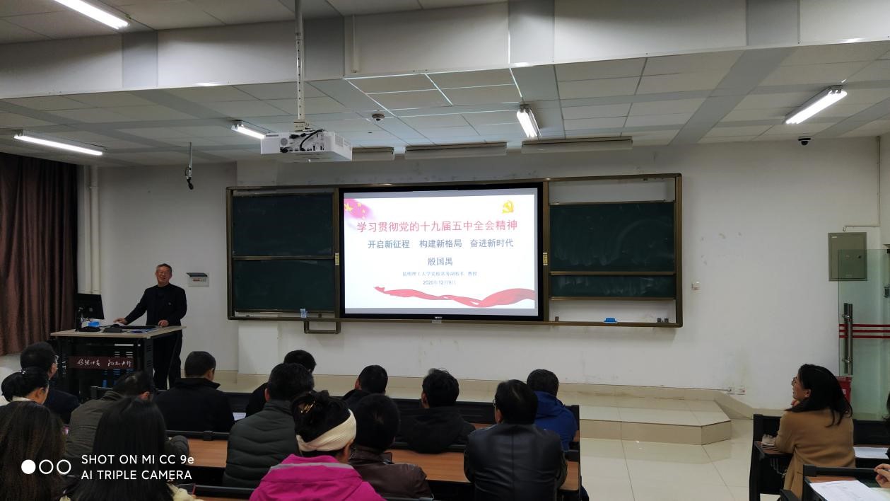 为深入学习党的十九届五中全会精神,12月9日19:00,91网站 党委邀请了91网站 党校常务副校长殷国禺教授为全院教职工及学生党员宣讲党的十九届五中全会精神。