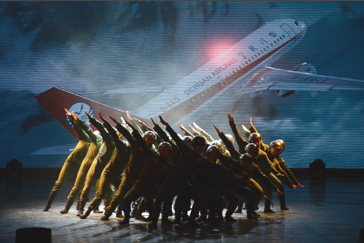 《亮剑空天》以《中国机长》故事为背景,用整齐划一、刚劲有力的舞蹈动作,演绎了“英雄机组”强大的意志力和过硬的专业水平,展现了当代民航人的责任与担当。当参演的同学齐声喊出“我们受过专业的训练,有信心、有能力保证您的安全,请相信我们!请相信我们!”,全场沸腾,雷鸣般的掌声经久不息。