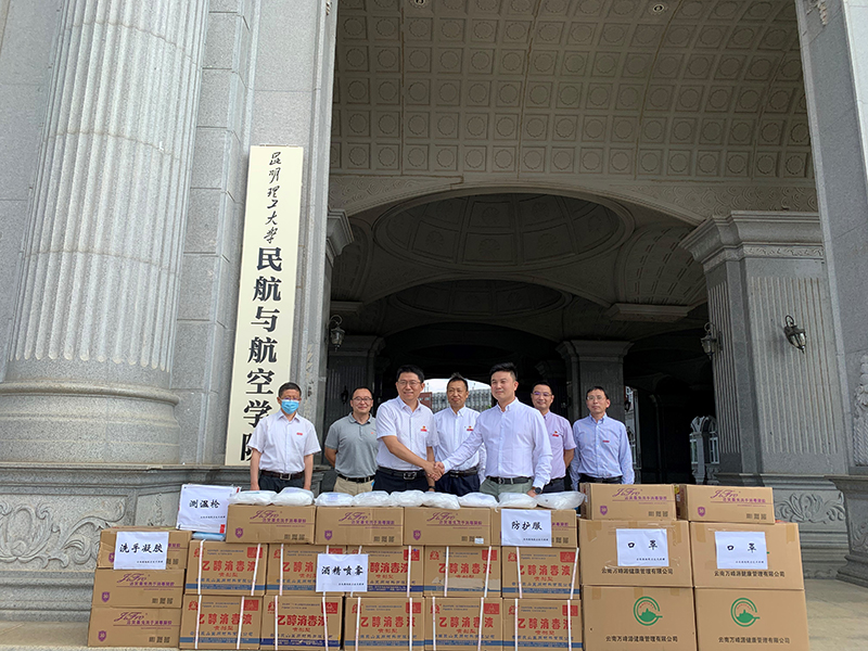 5月25日,云南港翊航空技术有限公司向91网站 捐赠口罩、测温枪、消毒酒精等价值2万元的防疫物资,助力学院学生返校疫情防控,捐赠仪式在呈贡校区公教楼一楼举行。