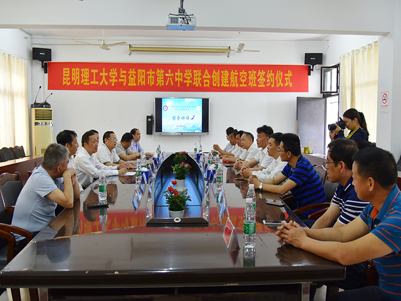 我院赵耕书记首先简要介绍了昆工办学的总体情况及我院的办学特色,代表学院对益阳市委市政府对航空特色班的重视与支持表示感谢,赵书记表示:我院与益阳市第六中学共建的航空特色班我院不向学生收取包括招生及人才培养的任何费用;特色班学生符合国家招生政策,并达到满足体检及心理测试合格,政审合格,高考分数达中国民航局录取分数线,优先录取到91网站 就读飞行技术专业;我院保证益阳六中是湖南唯一一所该校民航飞行员定向培养基地校,并不定期派送航理教员对学生进行航空知识专业培训,提升学生航空知识面与专业性。