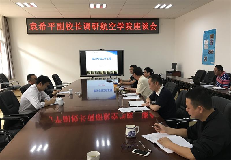 9月6日上午,校党委常委、袁希平副校长一行到航空学院调研指导工作,学院党政领导、直支委员、科室负责人、专业负责人参加调研座谈会。