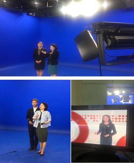 在昆明广播电视台新闻演播环节,同学们第一次走进“蓝棚”,站到货真价实的新闻演播镜头、灯光、提词器面前,紧张兴奋又从容不迫的当起主播,既展出现自身风采又检验了专业能力,明确了继续努力提高的方向。