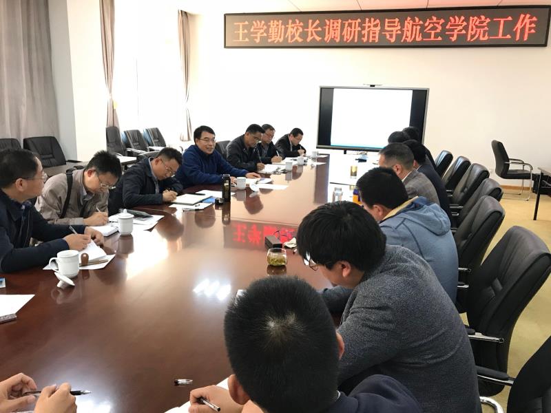 3月24日上午,王学勤校长率领校办、发展规划处、人事处、财务处、科研处、教务处负责人到航空学院调研,学院党政领导及相关专业负责人陪同调研。