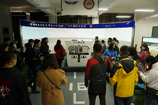 最后记者团一行在学院模拟飞行实验室体验了模拟飞行,并对学院的文化建设和实验室建设给予了充分肯定。
