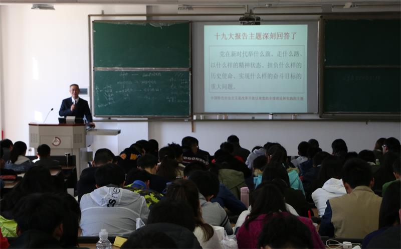 殷教授提到的第一点是深刻领会十九大报告主题:不忘初心,牢记使命,高举中国特色社会主义伟大旗帜,决胜全面建成小康社会,夺取新时代中国特色社会主义伟大胜利,为实现中华民族伟大复兴的中国梦不懈奋斗。第二点:深刻领会习近平新时代中国特色社会主义思想。八个明确、十四个坚持,是习近平新时代中国特色社会主义思想的具体展开和内涵,从世界观和方法论的高度,系统全面地回答了中国特色社会主义进入新时代后,中国共产党的“新目标”、“新使命”,面临的“新矛盾”等一系列带有根本性的问题,与治党治国治军的各方面工作紧密相连,既有理论高度,更具实践价值,鼓励我们为更好坚持和发展中国特色社会主义而奋斗。透彻深入的宣讲、鲜活生动的解读,让在场的听众深受鼓舞。