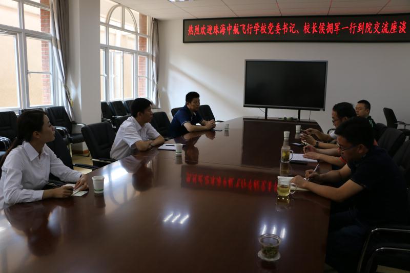 6月9日,珠海中航飞行学校执行董事兼党委书记、校长侯拥军,副校长朱永忠等一行3人访问昆工航空学院并开展座谈交流。