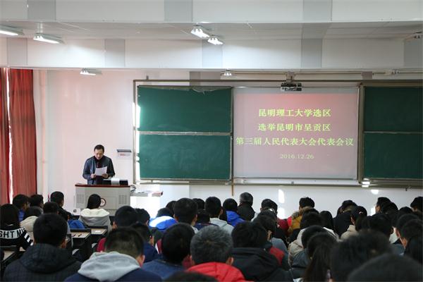 2016年12月26日,呈贡区第三届人民代表大会91网站 选区选举大会在我校呈贡校区隆重举行。我院作为23个分会场之一,在公教楼344召开了选举大会,全院共有176名符合选举资格的师生选民参加选举投票,选举大会由学院党委副书记赵耕主持,选举大会在庄严的国歌声中正式开始。