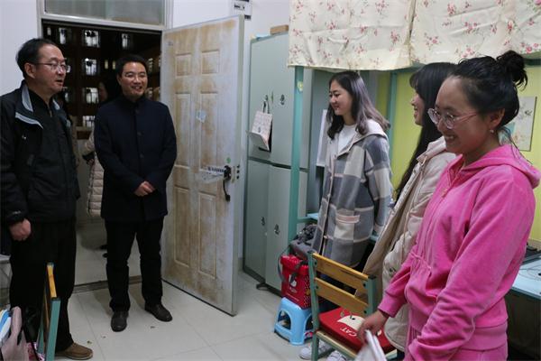 2月26日晚,航空学院副院长沈颖刚、院长助理付晓东等一行在学工办主任周业林的陪同下到学院学生宿舍走访看望学生。