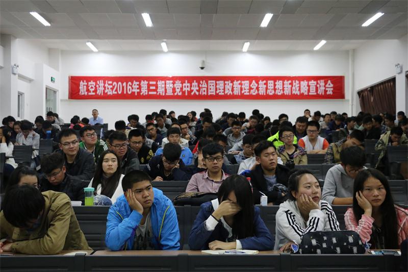 作为航空讲坛2016年第三讲主讲嘉宾,殷教授紧紧围绕全面从严治党、全面建成小康社会、全面深化改革、全面依法治国等方面,对十八届六中全会精神和习近平总书记治国理政新理念新思想新战略进行了解读。一是解读党的十八届六中全会精神,全会正式提出“以习近平同志为核心的党中央”,是众望所归、正当其时;审议通过《关于新形势下党内政治生活的若干准则》和修订后的《中国共产党党内监督条例》,对于深化全面从严治党,解决党内存在的突出矛盾和问题具有十分重要的意义。二是讲述习近平总书记治国理政新理念新思想新战略,围绕“一条主线、两个奋斗目标、三个价值观引领精神文化道德建设、四个全面战略布局、五位一体”,从政治、经济、文化、军事等四个方面论述治国理政等方面,讲述理论内涵与现实意义。三是结合91网站 开展的“两学一做”活动和航空类专业特点,从“为什么学、学什么、怎样学”等方面切入,讲解学习党的理论知识的重要性,具体分析了学习习近平谈治国理政思想与同学们的密切联系。勉励航空学院同学从大学开始要观大势、立大志、担大任,为自己成长做好准备。