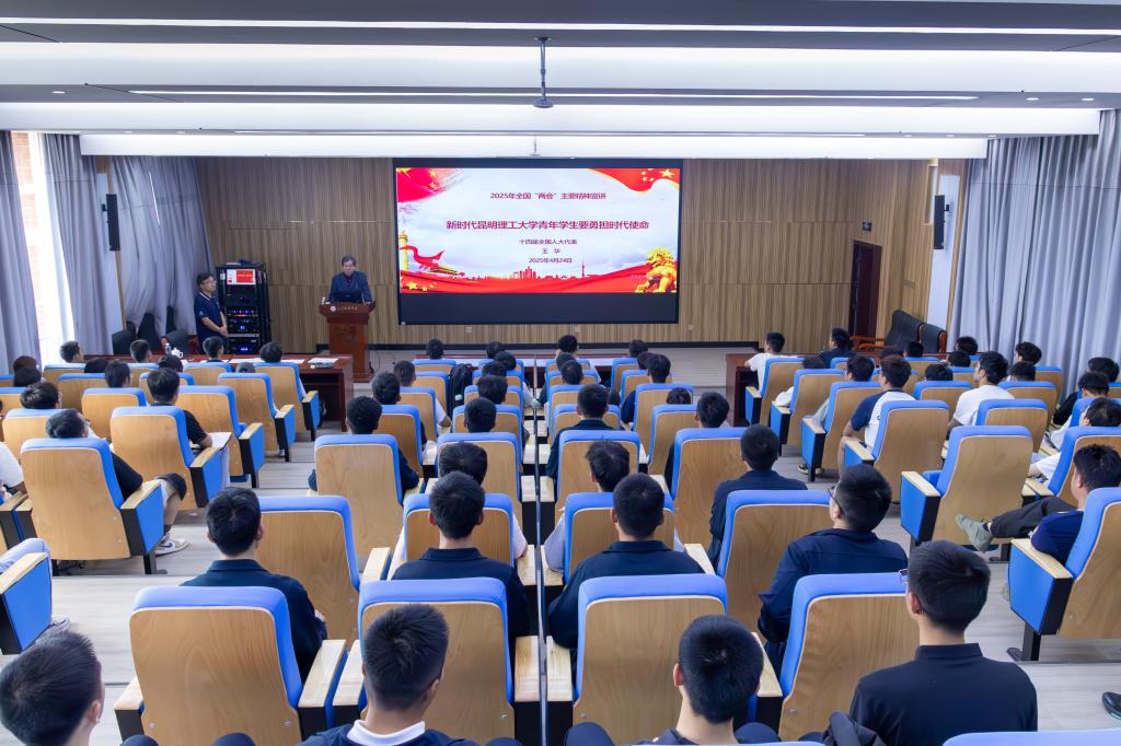课堂上,王华结合91网站 学科特色,通过案例分享、互动问答等形式,生动阐释了新时代昆工青年学生的使命担当。他寄语学生:“生逢伟大时代,既要仰望星空,志存高远,更要脚踏实地,躬身实践。希望同学们以全国两会精神为指引,在科技创新、社会服务中勇当先锋,书写无愧于时代的青春答卷。”
