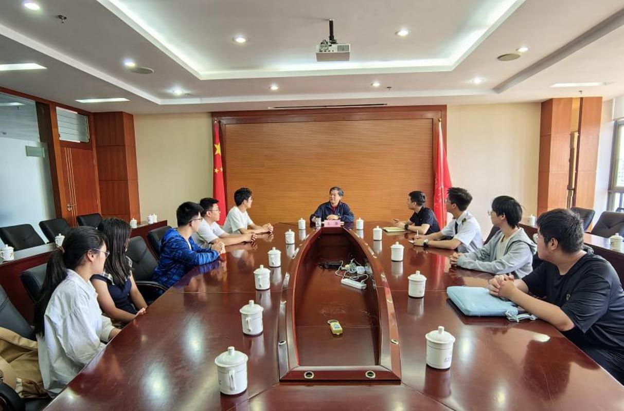第二次座谈(2025年6月9日):王华校长肯定班级“以赛促学”模式,结合国家战略需求,指导学习方法、科技创新与生涯规划,与同学们畅谈青年一代的使命与担当,并勉励同学们为人要谦虚谨慎,既要有吃苦耐劳的精神,又要有敢于面对挑战的勇气,同时要积极参与体育锻炼,保持身心健康。