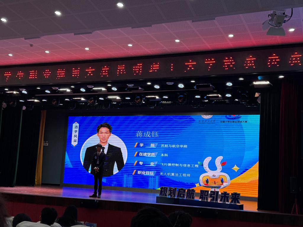 经过学院指导老师多次的修改打磨以及学院前期举选拔赛的实战历练,飞控221班蒋成钰以“算法驱动、低空先行”—面向高原山地农业的无人机算法工程师为题参加比赛,获得就业赛道本科组第二名的好成绩,斩获金奖,飞行241张皓然以“逐梦蓝天、航空报国”—以飞行技术为起点,向着民航飞行员的目标坚定前行为题参加比赛,获得成长赛道第五名的好成绩,斩获银奖。