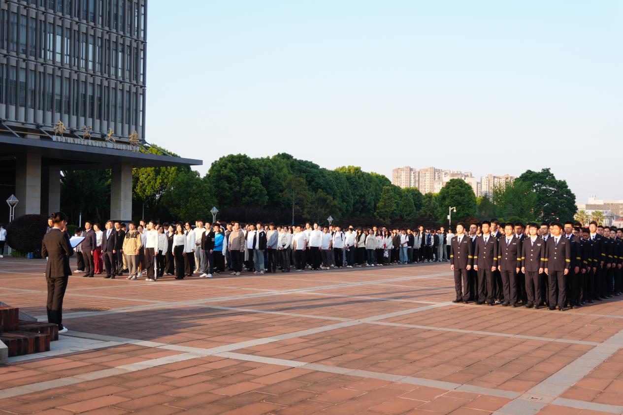 全体师生肃立注目,高唱国歌,五星红旗迎着朝阳冉冉升起,现场氛围庄严肃穆。