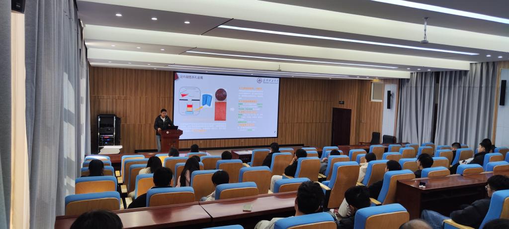 为进一步激发支部党员的科研创新热情,营造崇尚科研、勇于探索的良好氛围,活动特别安排了优秀党员科研成果分享环节。国家奖学金获得者何鳑伟同志以《基于孔隙结构的定向凝固多孔铜失效行为分析与可靠性提升》为题,向支部党员分享科研报告。报告中,何鹏伟同志结合自身科研项目,从研究背景、研究意义、研究方法、实验过程、创新成果及研究展望等方面进行全面阐述,清晰展现了定向凝固多孔铜材料研究的核心逻辑与技术突破点。在互动交流环节,他耐心解答了支部党员、本科生关于科研选题、实验设计、数据处理等方面的疑问,为大家开展科研工作提供了宝贵的经验借鉴。